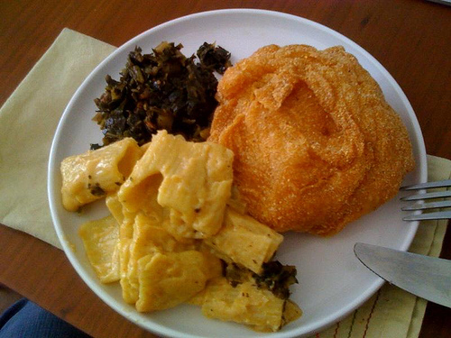 Pictured here is a little less than half of what they served me… collards, southern fried tofu and vegan mac n’ cheese (my favorite). I’ll save the rest for another meal. Damn good for ten bucks.