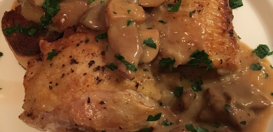 Chicken and Mushrooms with Giant Croutons from Bon Appétit ★★★★