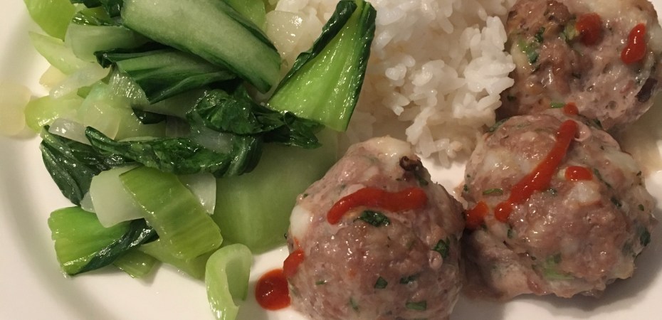 Made with ground pork from our meat CSA. Served with steamed rice and sauteed bok choy. These meatballs are a good make-ahead meal and/or makes great leftovers for bento lunches.