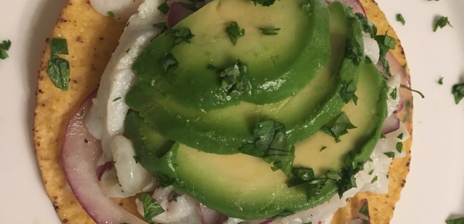Served on a tostada and topped with sliced avocado, but it’s just as good in a bowl with tortilla chips 😋