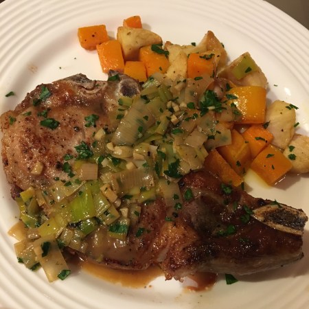 Pork Chops With White Wine and Leek Pan Sauce